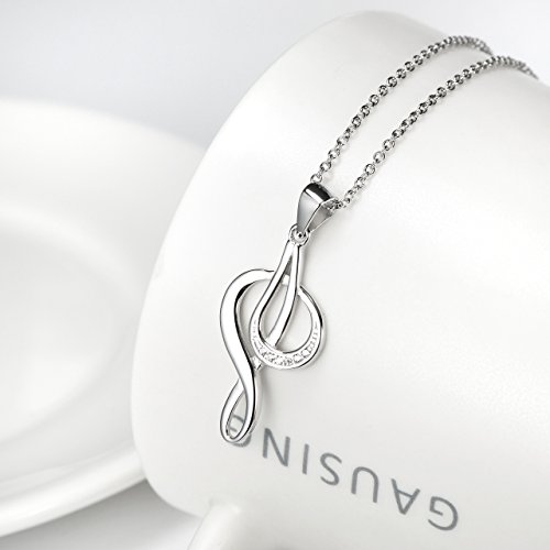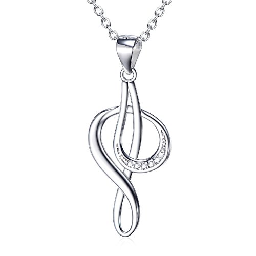 -. Feature : Necklace in rhodium-plated sterling silver featuring Music Note pendant set with white Cubic Zirconia rounds,Necklace Pendant Music Note Symbol: Infinity Knot Love about Music,Treble Clefs Pendant, "Music is what feelings sound like" / Pendant Size:31*13mm, 1.2mm Rolo chain 18", Weight: 2.65g / Perfect as Thanksgiving Day, Valentines Day, Mothers Day, Christmas, Birthday Gifts for Women, Teens, Girls or Moms! / Featured AAA grade quality,wearing sterling silver prevent allergy,long time wearing keeps you a good health. / Comes with YFN Luxury Jewelry Gift Box