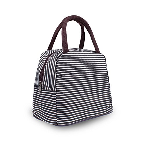 OUREILI Multi Functional Lunch Box Tote Bag with Zipper Closure for Kids,Adults (Black white stripes)