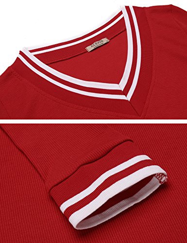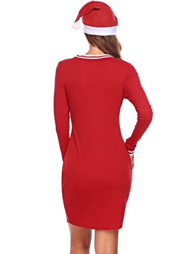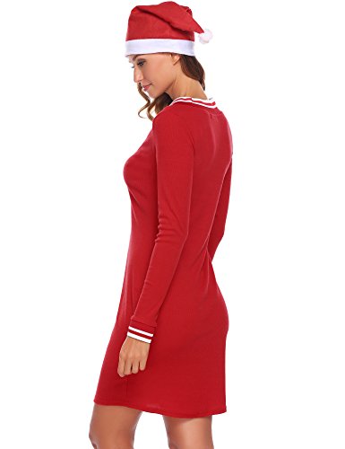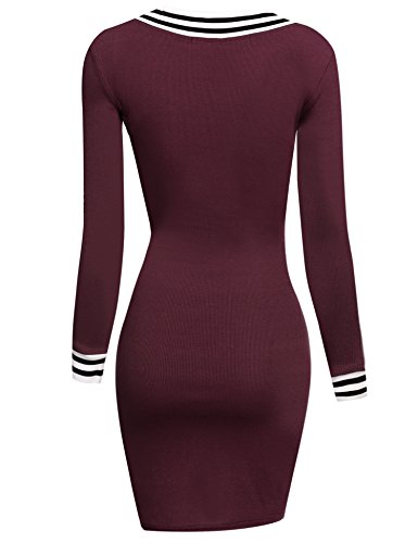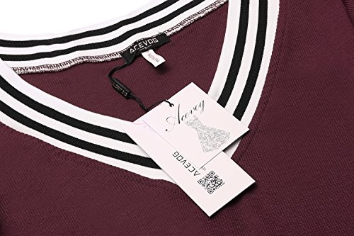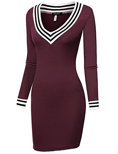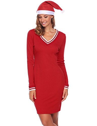 Acevog Women's V-Neck Long Sleeve Slim Fit Knit Sweater Bodycon Mini Dress (Medium, Wine Red)