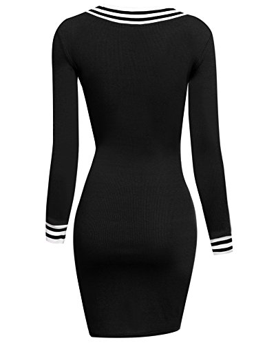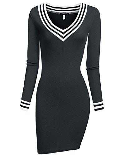 Acevog Women's V-Neck Long Sleeve Slim Fit Knit Sweater Bodycon Mini Dress (Medium, Black)