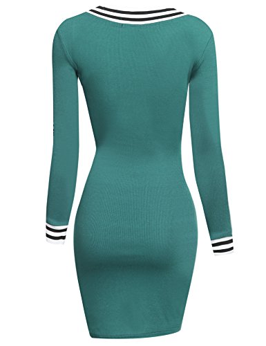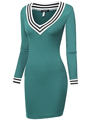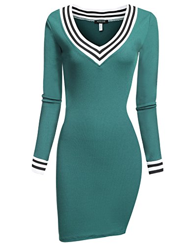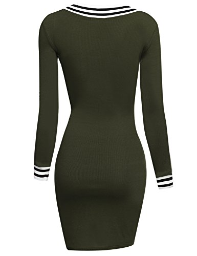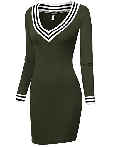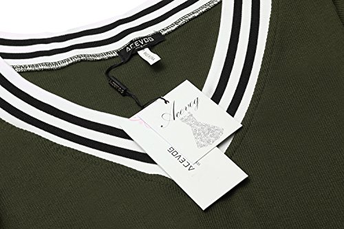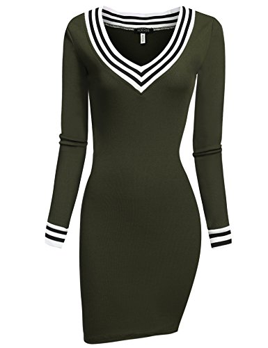 Acevog Women's V-Neck Long Sleeve Basic Knit Sweater Bodycon Mini Dress (Medium, Army Green)