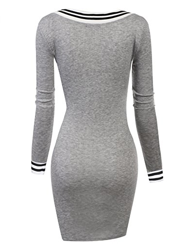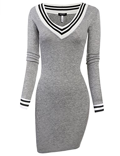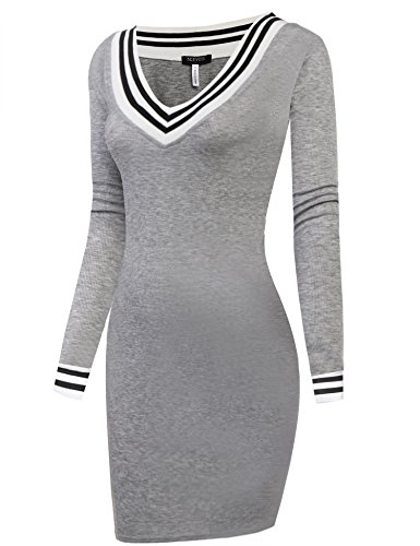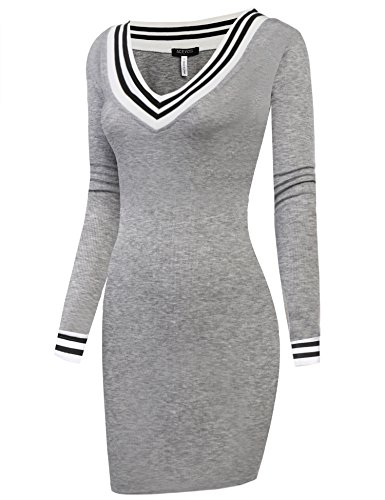 Acevog Women's V-Neck Long Sleeve Basic Knit Sweater Bodycon Mini Dress (Medium, Grey)
