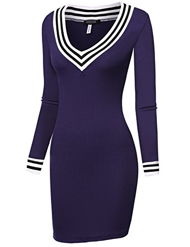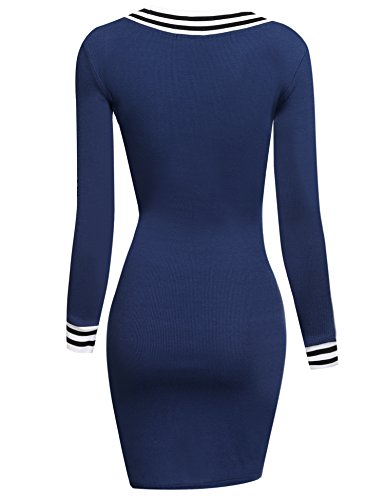 Acevog Women's V-Neck Long Sleeve Slim Fit Knit Sweater Bodycon Mini Dress (Large, Blue)