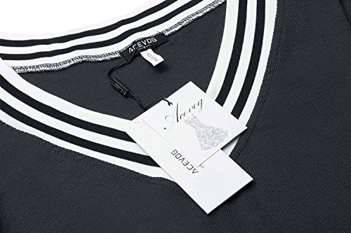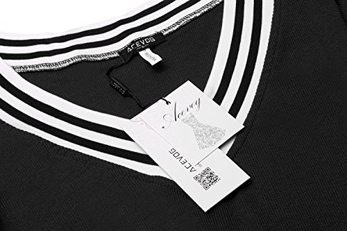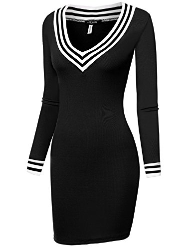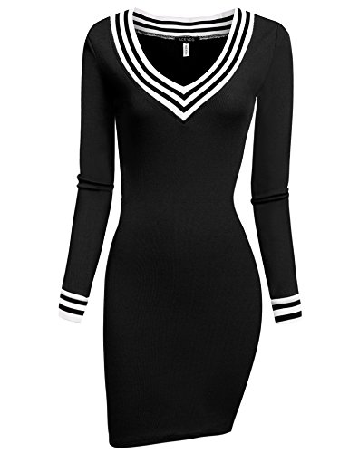 Acevog Women's V-Neck Long Sleeve Slim Fit Knit Sweater Bodycon Mini Dress (Large, Black)