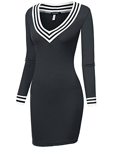 Acevog Women's V-Neck Long Sleeve Basic Knit Sweater Bodycon Mini Dress (Medium, Dark Gray)