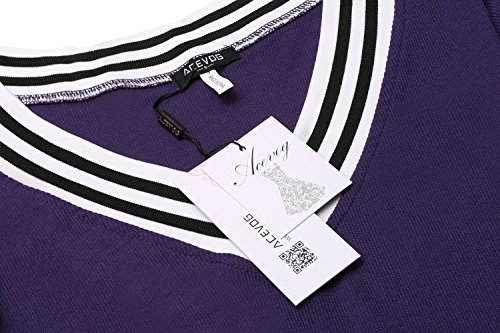 Acevog Women's V-Neck Long Sleeve Basic Knit Sweater Bodycon Mini Dress (Small, Purple)