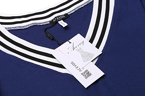 Acevog Women's V-Neck Long Sleeve Slim Fit Knit Sweater Bodycon Mini Dress (Medium, Blue)