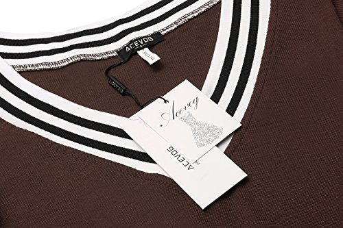 Acevog Women's V-Neck Long Sleeve Basic Knit Sweater Bodycon Mini Dress (Small, Brown)