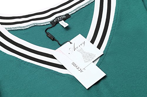 Acevog Women's V-Neck Long Sleeve Basic Knit Sweater Bodycon Mini Dress (Large, Army Green)