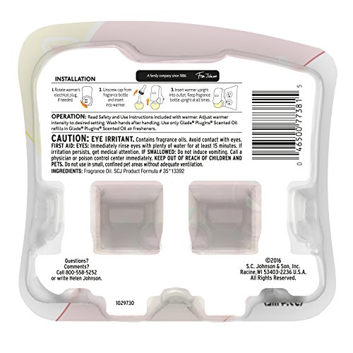 ReleaseDate : 2017-10-02 Studio : SC JOHNSON Publisher : SC JOHNSON Binding : Health and Beauty Product Description Continuous fragrance for any size room is just an outlet away with Glade PlugIns Scented Oils. With each fragrance refill lasting up to 30 days, on low setting, simply plug in the warmer for long-lasting fragrance that's adjustable to fill any room in your home with your favorite Glade fragrances. Rosy Cheeks. Warmth. Delightful apple notes with comforting spices of nutmeg and cinnamon. A touch of berries notes, balanced with creamy musk. Come inside; feels like cozy. 0