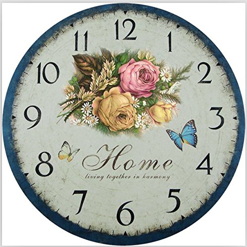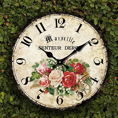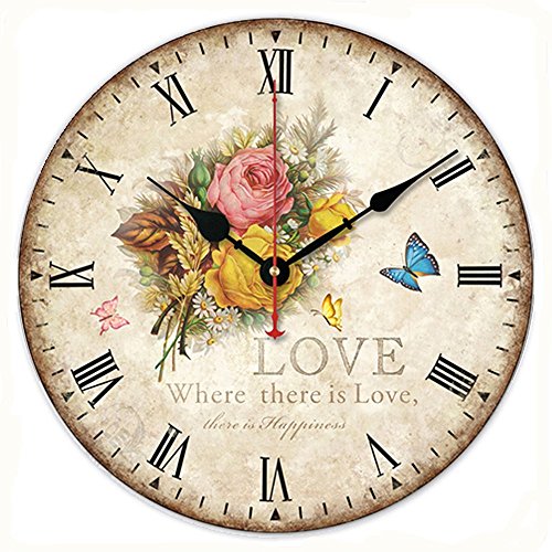 -. Title : Romantic Roses Clock, 12" Eruner Country Floral Wall Clock Wooden Art Decor Non-Ticking Home Decoration