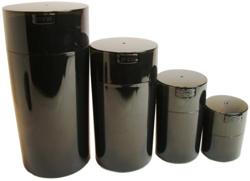 Tightvac Nested Set of 4 Vacuum Sealed Dry Goods Storage Containers, 4 Sizes: 24-Ounce, 12-Ounce, 6-Ounce, 3-Ounce, Black Pearl Tinted Body/Cap