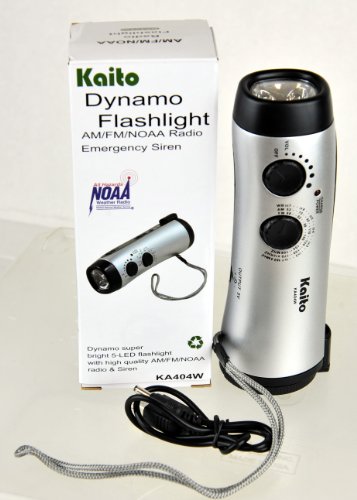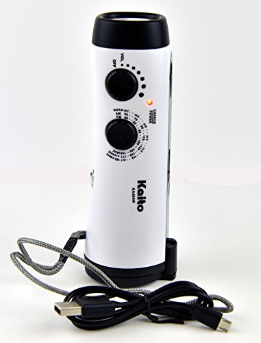 Kaito KA404W Wind-up 5-LED Flashlight with AM/FM NOAA Weather Radio, Cell Phone Charger & Emergency Siren With Micro USB Port and Cable