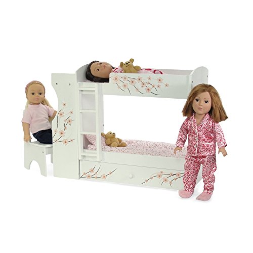 Double Bunk Bed and Desk piece in versatile white and pink with floral design.