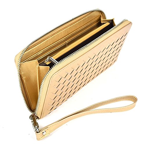-. Feature : Comes With a Wonderful Gift Box.RFID wallet for women,wallets for women,wallet for cell phone,wallet for cell phone and credit cards,birthday gifts / Anti-RFID SCANNING: It can block Apple Pay From Others,NFC,Protect your credit cards,ID cards or passport from criminals like scanning by others.Hate being exposed your personal information by others,Using this wallet,you wouldn't get this trouble. / DURABLE: Made of high-quality Top Genuine Leather which can be used for many years.It's soft and smooth when touching with Dlegant Design and Fancy Colors. / DUBBLE SAFE: It has dual-layer zipper.You can put the credit cards that you often to use and cash in the inner slot which is much more safer compared to ordinary wallets. / HUGE CAPACITY: 8.8*4.9*1.2 inch (L*H*W).Total 10 Slots,6 Slots for Credit cards,1 Slots for ID Card,3 Slots for Cash or Cheque.
