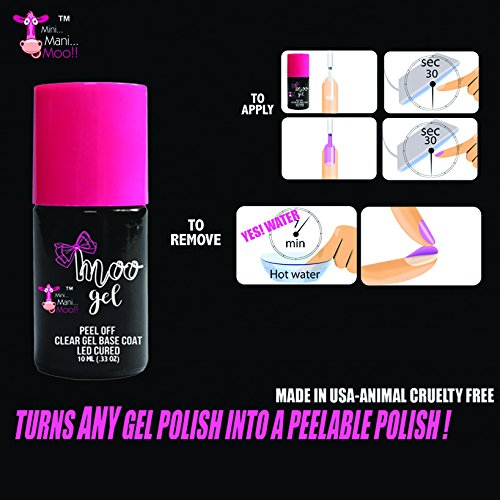 -. Binding : Health and Beauty -. Brand : Moo Gel -. EAN : 0857213006721 -. Feature : TURN ANY GEL POLISH INTO A PEEL OFF GEL POLISH -. IsAdultProduct : 0 -. Label : Mini Mani Moo -. Manufacturer : Mini Mani Moo -. MPN : MOO-GEL -. PackageQuantity : 1 -. PartNumber : MOO-GEL -. ProductGroup : Health and Beauty -. ProductTypeName : HEALTH_PERSONAL_CARE -. Publisher : Mini Mani Moo -. Studio : Mini Mani Moo -. Title : Moo Gel™ Peel off LED gel base coat to use under any gel polish -. UPC : 857213006721
