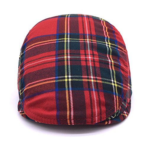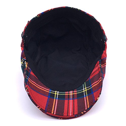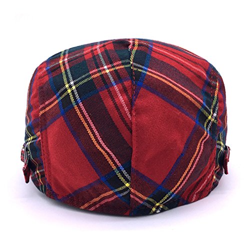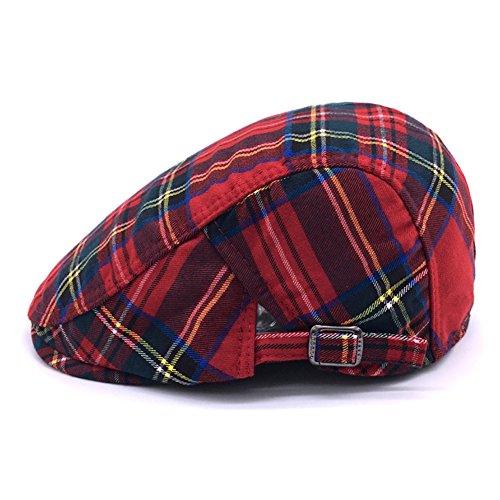 Product DescriptionSoultopxin Men Adjustable Newsboy Cap Unisex Red Plaid Cotton Warm Flat Hat0