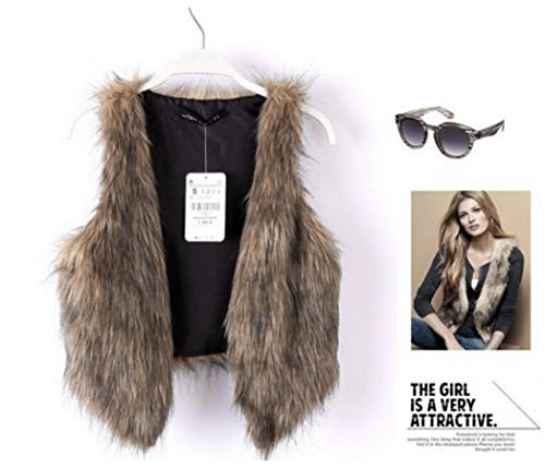 -. Title : Minetom® Damen Pelz Fellweste Weste Frauen Lederweste Fellweste Faux Fur Vest Gilet Waistcoat Winter Braun