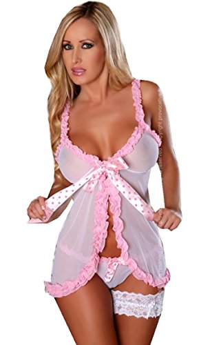-. Binding : Textilien -. Brand : 1001-kleine-Sachen -. Color : Weiß/Pink -. Department : Damen -. Feature : Traumhaftes Babydoll von Provocative Dessous, gefertigt aus elastischem weißem Tüll-Material und pinken Rüschen. Der vordere Verschluss wird durch eine große Schleife verdeckt. Die Lieferung erfolgt mit passendem String-Tanga. / Lieferumfang: Babydoll und String-Tanga / Farbe: weiß/pink / Größe: S/M, L/XL, XXL / Der Artikel ist in einer Hochglanzbox verpackt -. PackageQuantity : 2 -. ProductGroup : Apparel -. ProductTypeName : SLEEPWEAR -. Title : Negligee "Fleur d'Ete" Babydoll aus Tüll Nachtkleid inkl. String von Provocative Dessous