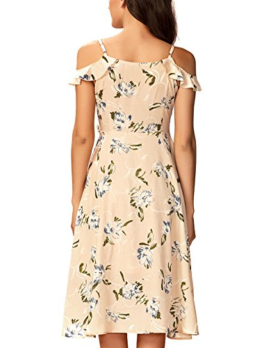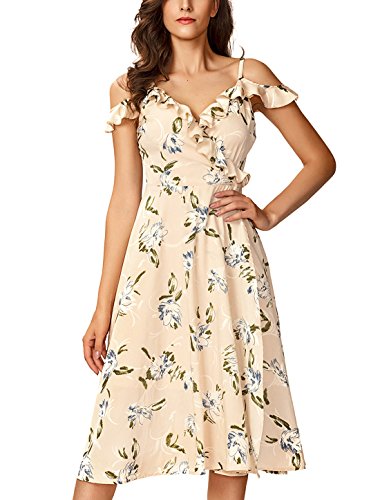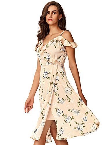 Noctflos Women's Floral Ruffle V Neck Off Shoulder Slip Wrap Dress