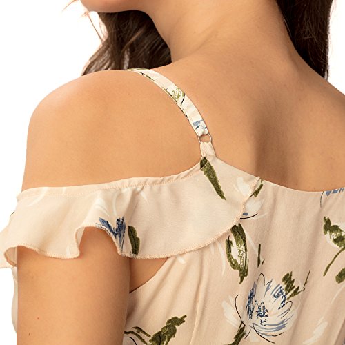 Vintage Floral Cherry Printed, Sweet Ruffle Details, Sexy V Neck & Cold Shoulder Design, Adjustable Straps, Cool Chiffon Fabric