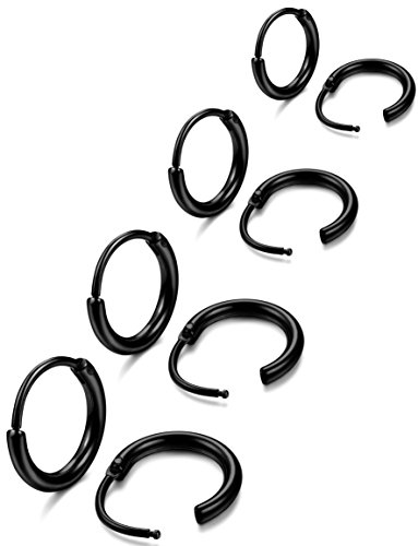 -. Title : Jstyle 3-4 Pairs Stainless Steel Mens Womens Hoop Earrings Cartilage Lip Piercing Nose Hoop 18G 8mm-14mm