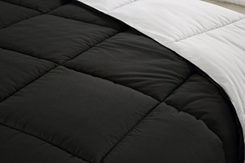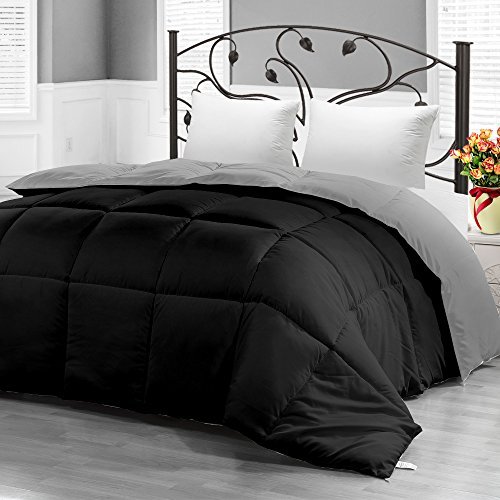 Studio : Utopia Bedding Publisher : Utopia Bedding Product Description Expect a great night's sleep year round in the luxurious comfort of our microfiber Comforter! This comforter's soft polyester fiber fill insulate warmth in winter and gives cozy feel throughout the year. Adorned with a black and sleek light purple box quilt texture and design, the reversible bedding adds versatility and comfort to any bedroom's decor. You can place this reversible cover on bed with either side up