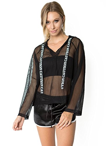 -. Feature : Fahion Women's Black Hooded See Through Sheer Pure Mesh Long Sleeve / Fit for everyday dressing, for women, for summer / Model is wearing a Small. Height 5'8" / Waist 24" / Full length 24" , Chest 46", Waist, 57", Sleeve length 28 1/2"