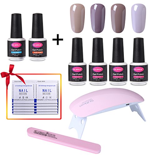 Items Included: ♥4 x Color Gel Polish ♥1 x? No Wipe Top Coat ♥1 x Base Coat ♥1 x SUNMINI LED Nail Lamp ♥1 x Nail Sanding File(Double Sided) ♥1 x 10PCS Remover Wrap ? ♥Brand:CLAVUZ ♥Volume:8ml ♥Advantage:pure color,simple,loyalty ? How to use: NO.1: Prep and push back cuticles. NO.2: Apply base coat nail polish, cure with UV light for 2 mins, LED light for 30-60 secs. NO.3: Apply color coat in a thin application - cure. NO.4: Apply a second color coat - cure. --Apply Third color coat if necessary. NO.5: Apply no wipe top coat nail polish - cure. NO.6: Enjoy your 14 day manicure!