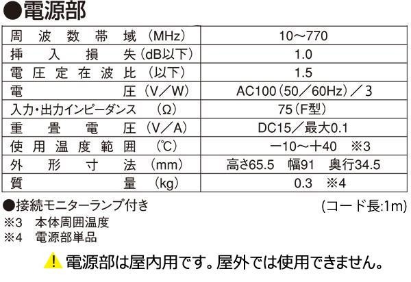 | 地デジに対応した、低雑音・高出力の電源分離型ブースター。 |