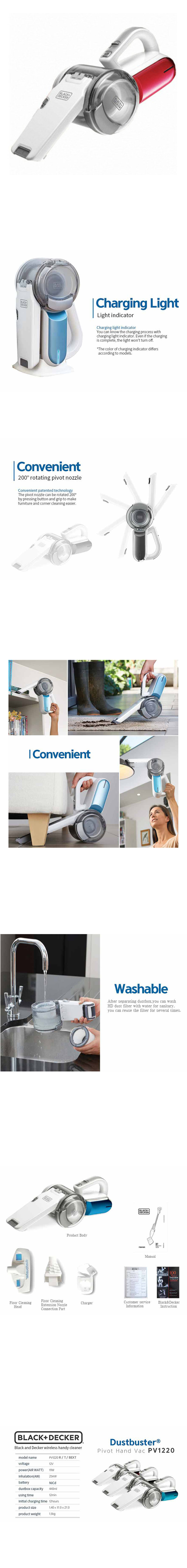 Black & Decker PV1220 Dustbuster 12 Volt Cordless Cyclonic Pivot Handy Type Vacuum Cleaner