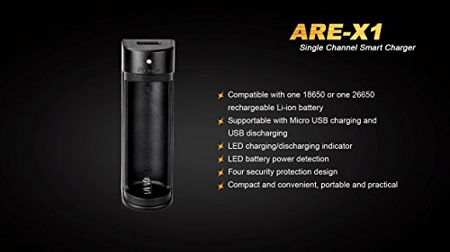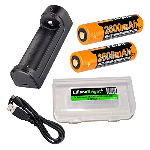Bundled with an additional Fenix 18650 2600mAh rechargeable battery & ARE-X1 charger with EdisonBright BBX3 battery carrying case.