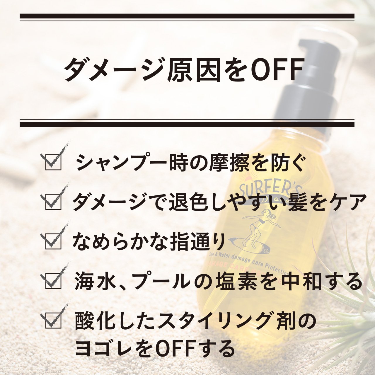 It is a remover that neutralizes sodium · magnesium of the sea water attached to hair and chlorine of the pool, which causes hair damage, making it easier to shampoo hairdressing such as wax and spray with shampoo.