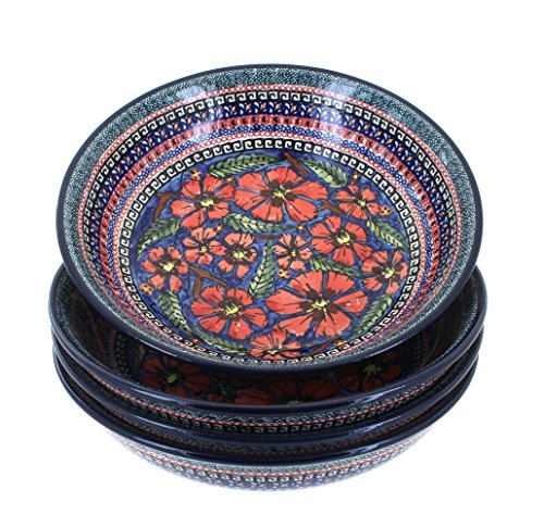 Polish Pottery Jungle Flower 4 Piece Large Salad Bowl Set