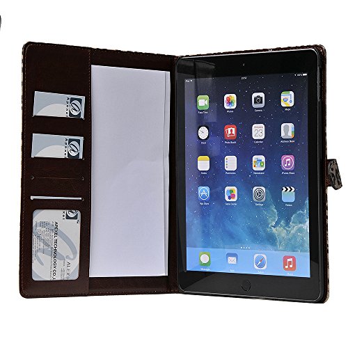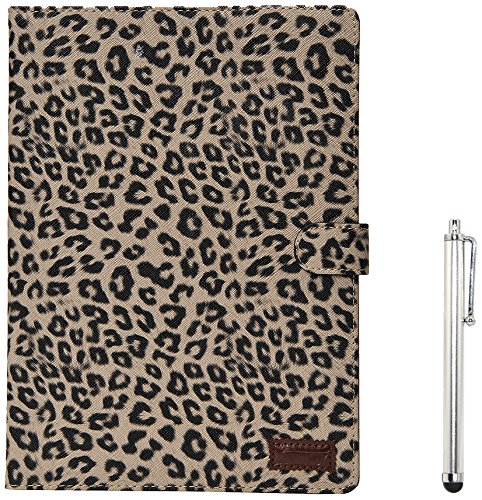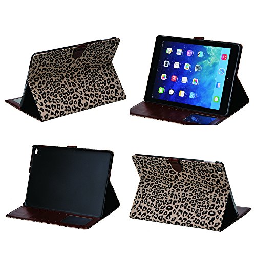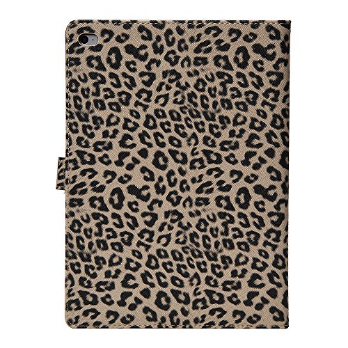 Apexel Leopard Pattern PU Leather Flip Case Cover with Card Slots Holder for iPad Air 2 2014 Grey with Touch Pen