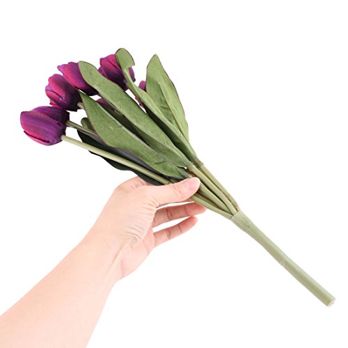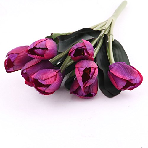 uxcell Fabric Wedding Tulip Design Artificial Simulation Handhold Flower Bouquet Dark Purple