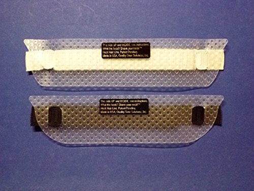 Includes2 templates of different sizes to fit any head and neck. Made of a thin andflexible plastic film, specifically designed to comfortably fit the shape ofthe back of your neck.
