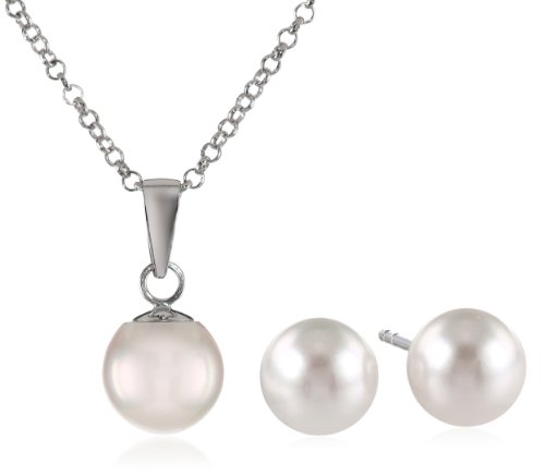 -. Feature : Jewelry set featuring pendant necklace and stud earrings with round cultured Akoya pearls / The Akoya pearl is either white or cream in body color and can have yellow, pink or blue hues. / The natural properties and process of pearl formation define the unique beauty of each pearl. The image may show slight differences in texture, color, size and shape. / Imported, assembled in the USA