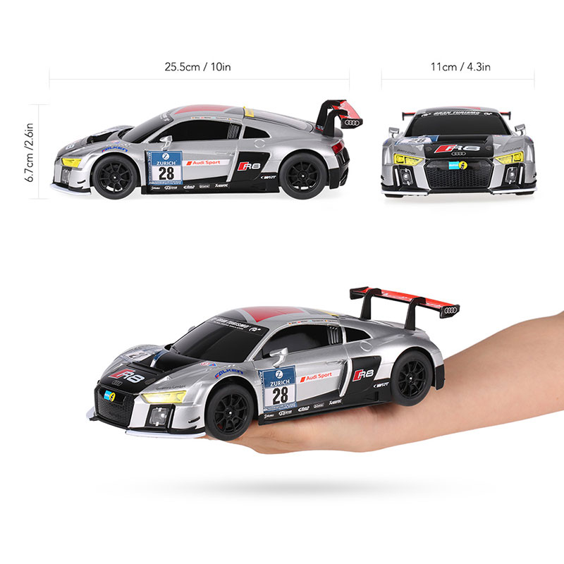 AUDI R8 LMS is a great gift for all racing car enthusiasts! It has achieved more than 100 victories in international competitions. This officially licensed AUDI R8 LMS is designed with non-toxic ABS plastic and detailed interior. 1/18 scale is suitable for indoor and outdoor control. It includes a 27MHz controller with the functions of forward, reverse, left turn and right turn. Don't hesitate to buy it now!