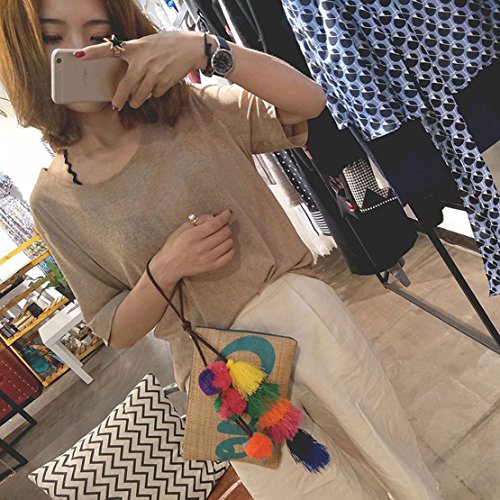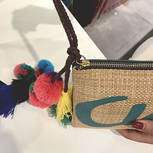 -. Feature : Summery women clutch envelope bag / MATERIALS: straw and faux leather exterior, polyester interior / Approximate Dimensions (in inches): 6.7H X9 W X 0.79 D / It is light weight, easy carry, Super convenient bag for cellphone,wallet,purse. / Simple and chic, match this perfect sized shoulder bag to any outfit!