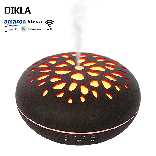 DIKLA Smart Wi-Fi Essential Oil Diffuser Compatible with Alexa, Work with Google Home and App Control 400ML Ultrasonic Cool Aroma Humidifier with 3 Timer Settings Deep Wood Grain
