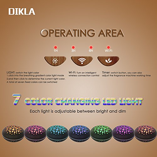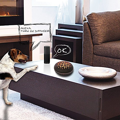 - DIKLA essential oil diffuser Compatible with Alexa, Work with Google Home and Umists APP; such as Amazon echo, echo dot, echo tap. You can control it with your voice wherever there is an Alexa devices and WIFI. You can also turn it on or off; set the working hours even change color the LED light via Umists APP, which is a new convenient function.