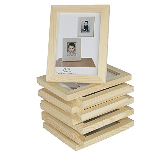 Set of 10 Unfinished Solid Wood Photo Picture Frames 5x7 Inch , Ready to Paint for DIY Projects