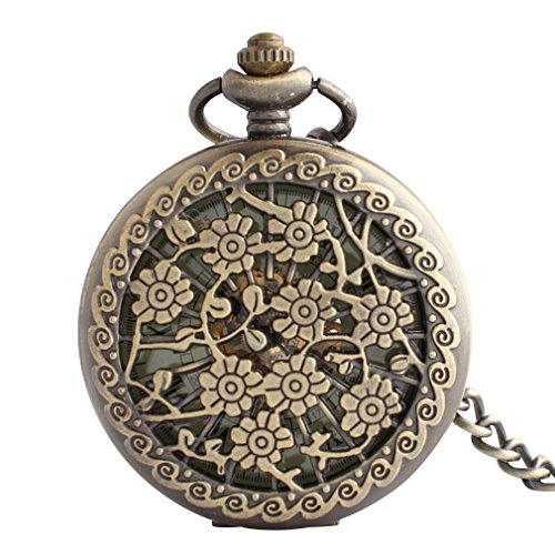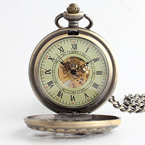 -. Title : TODDCAHALAN Vintage Antiqued Stainless Steel Case Skeleton Mechanical Pocket Watch with Chain F113