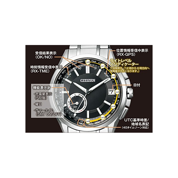 케이스 소재:슈퍼 티타늄,두께: 12.5mm(설계치)고, 정밀도: ±5초/월(비수신 시)고, 기능:10기압 방수,광발전:풀 충전 시 약7년간 구동,위성 전파 수신 기능,위치 정보 취득 기능,파워 세이브,라이트 레벨 indicator,내메탈,내자1종,야광(바늘+인덱스)고, 데《라테쿠토》TIC,파 회《구스》,월드 타임 기능(27지역,40타임 존 대응)고, 파 배《추아루카렌다》,썸머 타임 대응,피트 adjuster