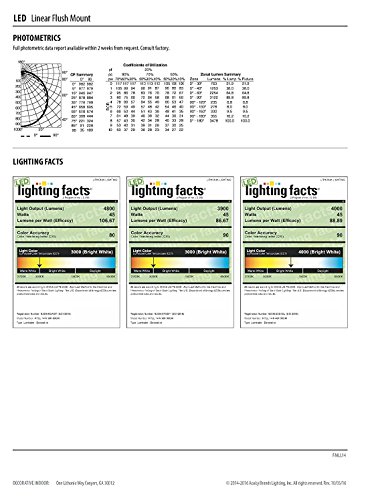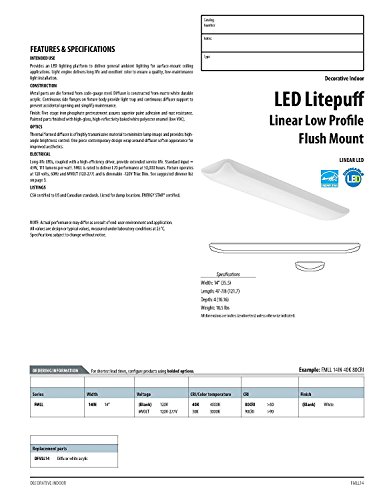 The Lithonia Lighting 4 Foot LED Wide White Linear Flush Mount Light provides general lighting and can be mounted to a wall or ceiling. This FMLL LED linear fixture comes with a textured white acrylic lens and is an ideal replacement for a fluorescent linear fixture that uses (2) T8 light bulbs.