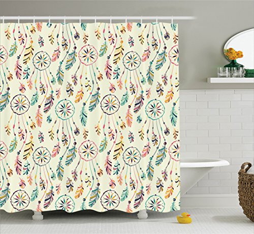 Native American Shower Curtain by Ambesonne, Colorful Set of Tribal Boho Dreamcatchers Soft Retro Colors Shaman Symbol, Fabric Bathroom Decor Set with Hooks, 70 Inches, Multicolor