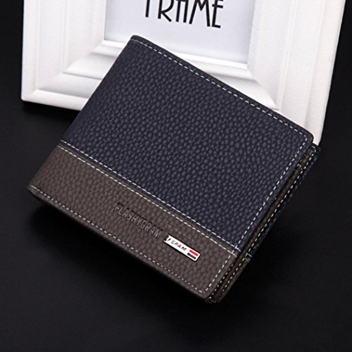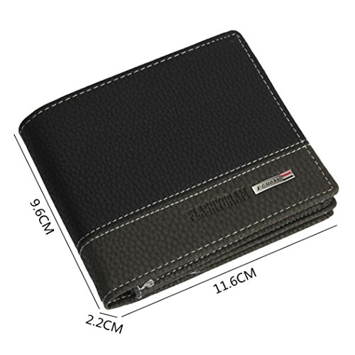 -. Feature : Material:Leather / Size: About 11.6cm (length) * 9.6cm (width) * 2.2cm (heigth) / Leather: vintage look premium leather for a noticeable luxurious feel and unmatched durability.You can use it for a long time. / Convenience: small and light weight, easy to carry, slim and compact design, can fit into most pockets, you can carry the usual CARDS with you. / This ID- credit card holder is great for gift giving inside. Detail: Credit card inserts, window ID slim Bi-Fold flip wallet, easy to carry around.