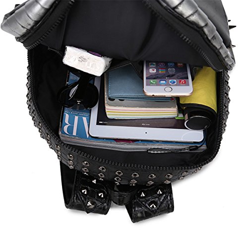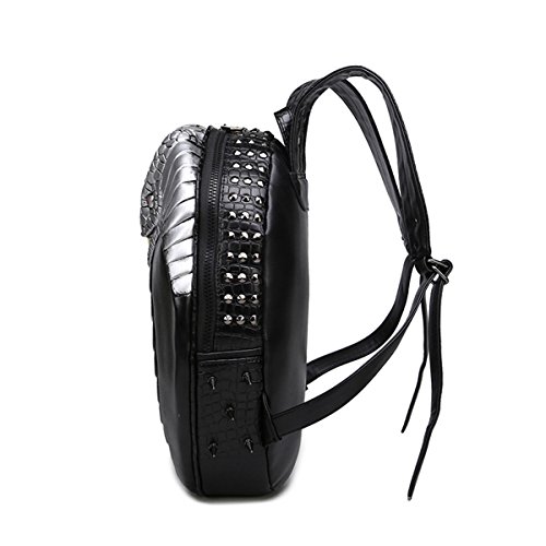 -. Feature : Material --- Made of High Quality PU Leather with Non-fraying Stitching and Strong Zippers, Sturdy and Durable. / Large Capacity & Reasonable Structure --- With the dimension of 18" tall, 4.7 width, the main compartment can hold up laptops to 15.6 inch. Besides, it has laptop padded sleeve and two small openings which can store stuffs like card, mobile phone, keys, etc. / Unique Cool 3D Design Daypack --- This whole new released chic backpack can express your own voice on fashion. The king of the snakeP.R.Inted in the front of the bag is so vivid, makes it look lifelike. Besides, the bag is ornamented with 3D metallic rivets, which make it more vogue, you're sure to be attractive and outstanding as you carry it out on the way to school or the traveling. / Adjustable Shoulder Strap --- The wide strap can ease the pressure on the shoulder, comfortable top handle make it easy to carry. And with flexible adjustable buckle, you can adjust the length of the shoulder straps easily. / Overall Size --- 12.2"L x 4.7"W x 18.1"H / 31cm L x 12cm W x 46cm H. This shoulder backpack is suitable for men or women, boys or girls who need a high capacity daypack to travel, sport time or go to school, even workplace.