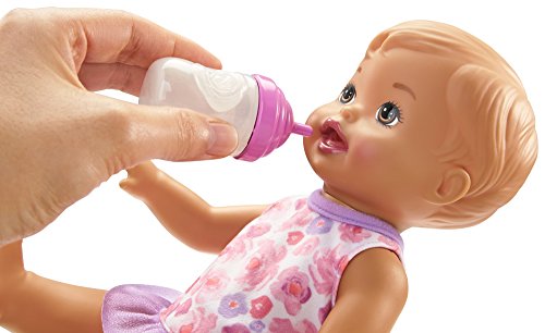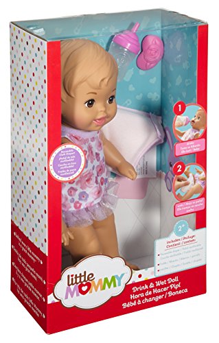 Now your little one can learn to feed and change her baby with the Little Mommy Drink and Wet doll